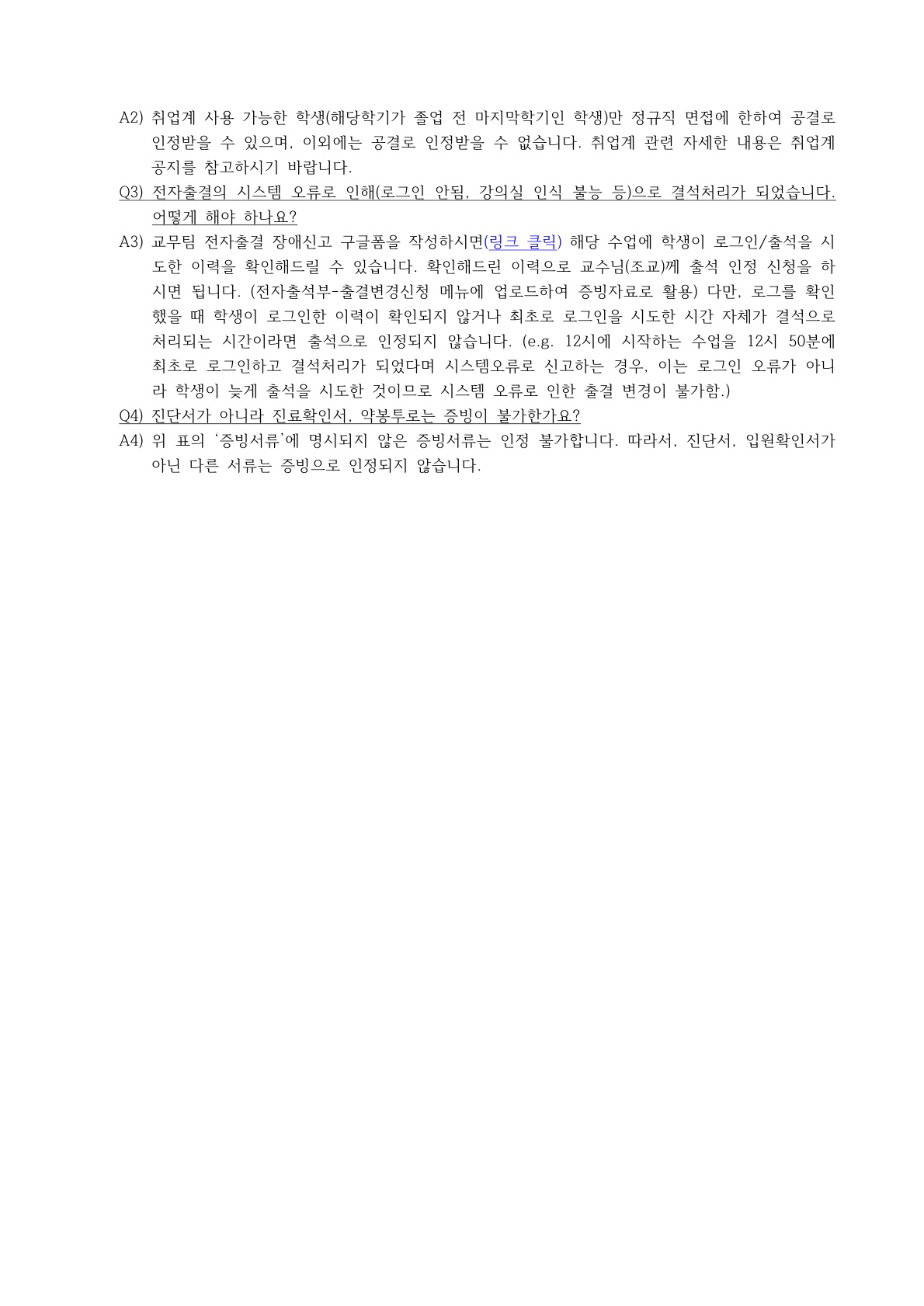 [학부/학사과정] ★필독★ 출석(전자출결, 공결, 취업계, 코로나 등) 관련 안내(08.29.수정)