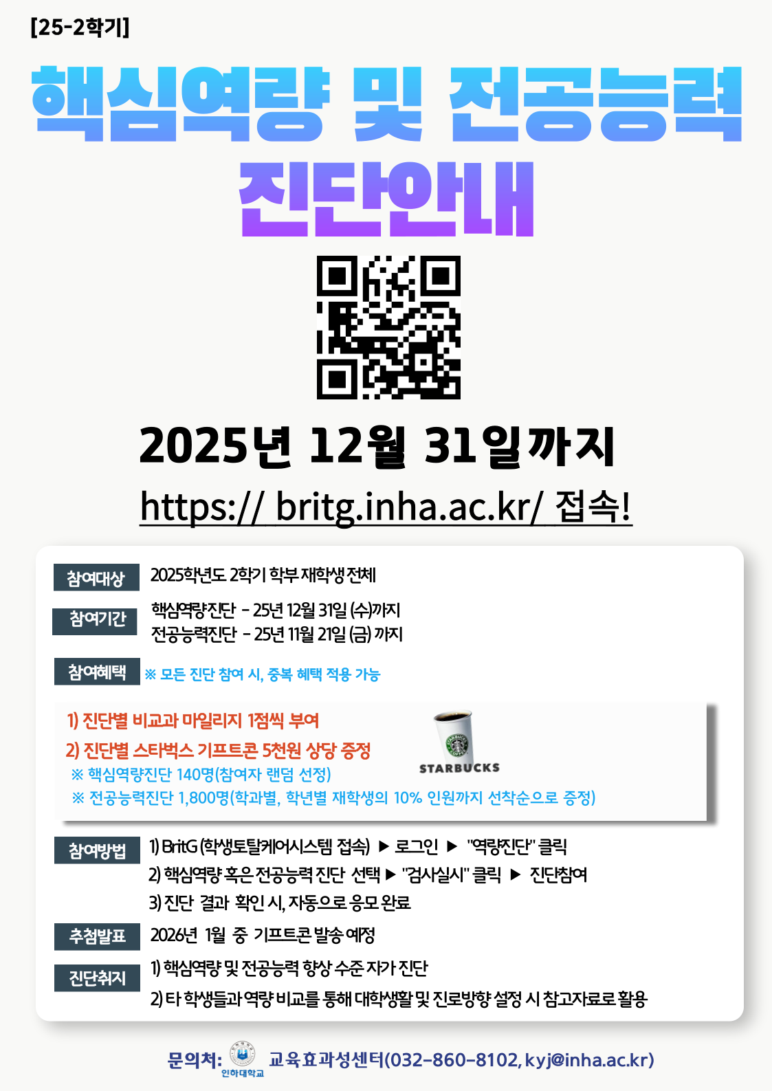 [교육효과성센터] 25-2학기 핵심역량 및 전공능력 진단 시행 안내(스타벅스 기프트콘 추첨 증정)