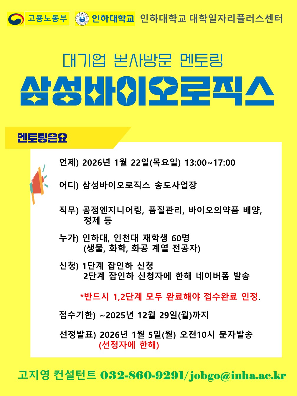 ※ 인하대, 인천대, 삼성바이오로직스, 인천고용센터가 공동운영하는 프로그램입니다.