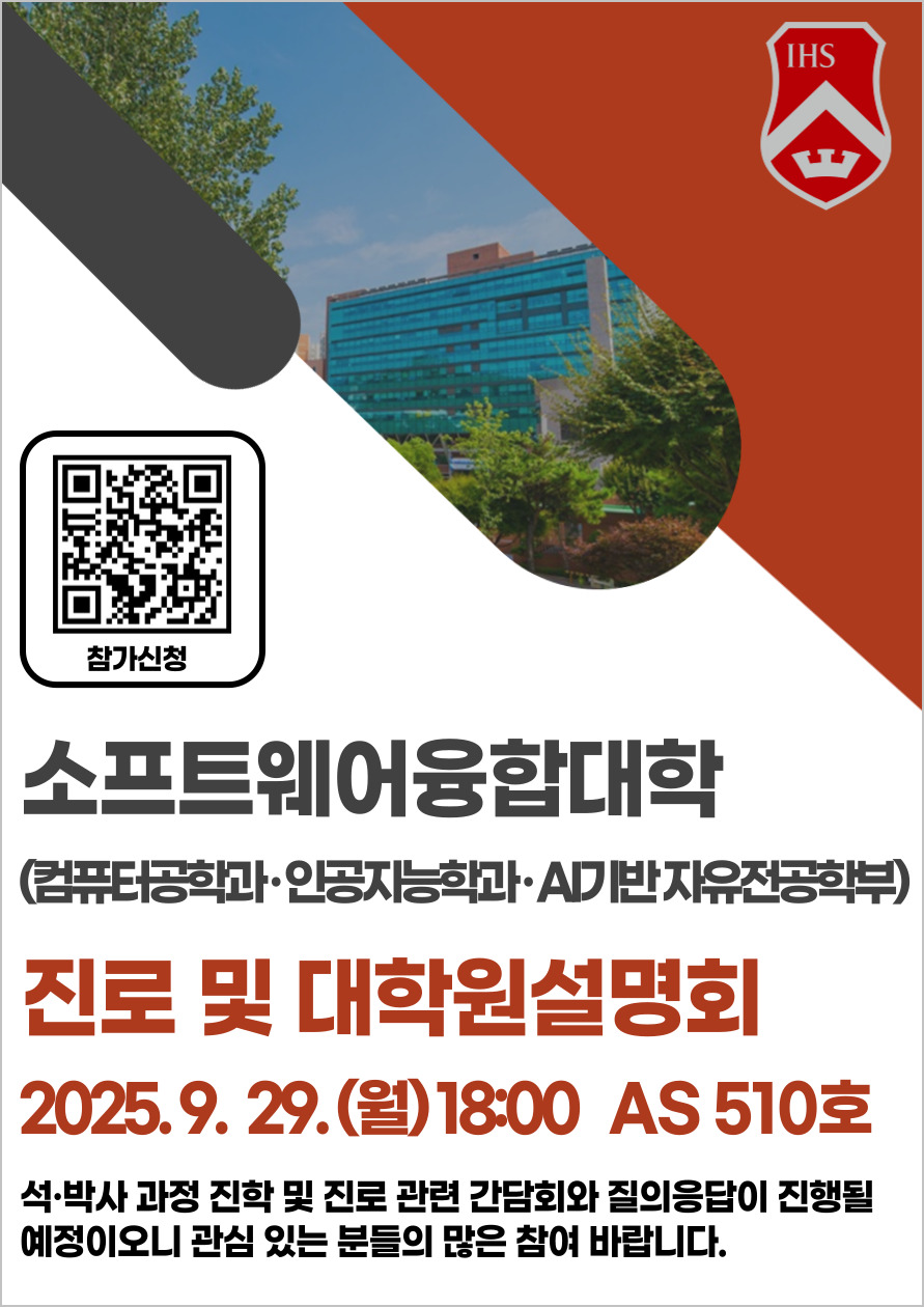 소프트웨어융합대학 진로 및 대학원 설명회(9/29, 18:00)