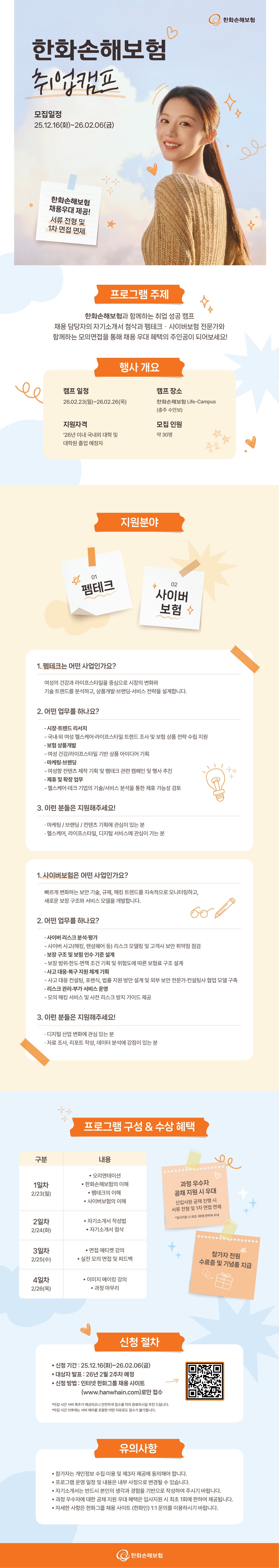 📢 2026 한화손해보험 동계 취업캠프 모집(~2/6)