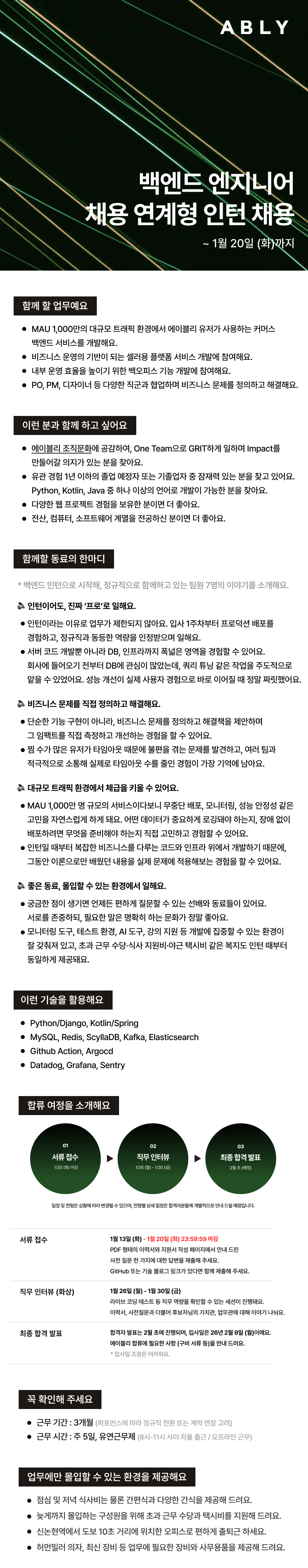 [에이블리] 백엔드 엔지니어 (채용연계형 인턴) 공고