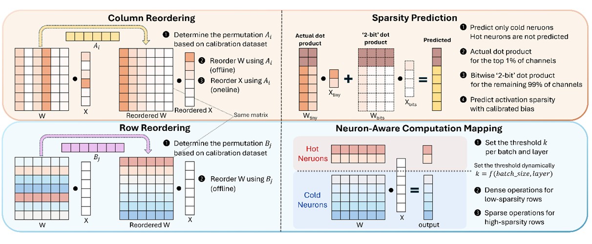 이영민 교수는 “LLM 추론 가속에서 활성 희소도 활용은 매우 유망하지만, 출력 활성 희소도는 정확하고 효율적인 활용이 어렵다는 한계가 존재했다. oFFN은 LLM 추론 특성에 대한 흥미로운 고찰을 바탕으로 FFN 가중치를 재배열하고, 이상치 차원과 뉴런을 구조적으로 군집화 함으로써 기존 한계를 극복했다. 또한, GPU의 텐서 코어와 CUDA 코어를 상호보완적으로 활용하여 단일 배치 뿐만 아니라 멀티 배치 추론에서도 활성 희소도를 실질적인 추론 가속으로 실현한 연구라는 점에서 의미가 크다. 앞으로도 관련 후속 연구를 지속적으로 발전시켜 나갈 계획이다”라고 밝혔다.
