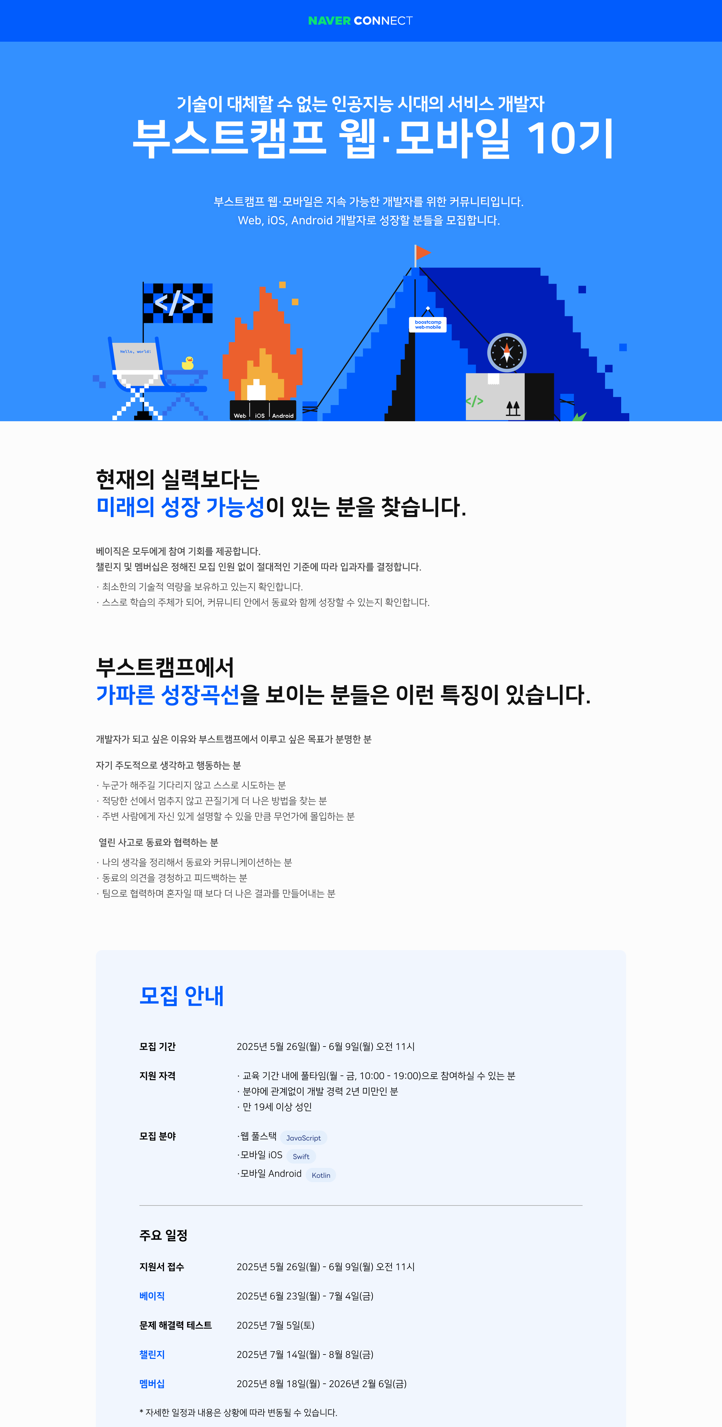 📢 부스트캠프 웹•모바일 10기 교육생 모집 시작!