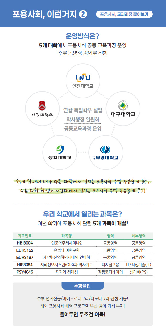 HUSS 포용사회 사업단에서 주관하는 프로그램과 포용사회 연계전공에 대해서 학생 여러분들께 홍보 차 올립니다. 유럽문화학과도 사업단에 참여하고 있는 만큼 학생 여러분들의 많은 관심 부탁드립니다.