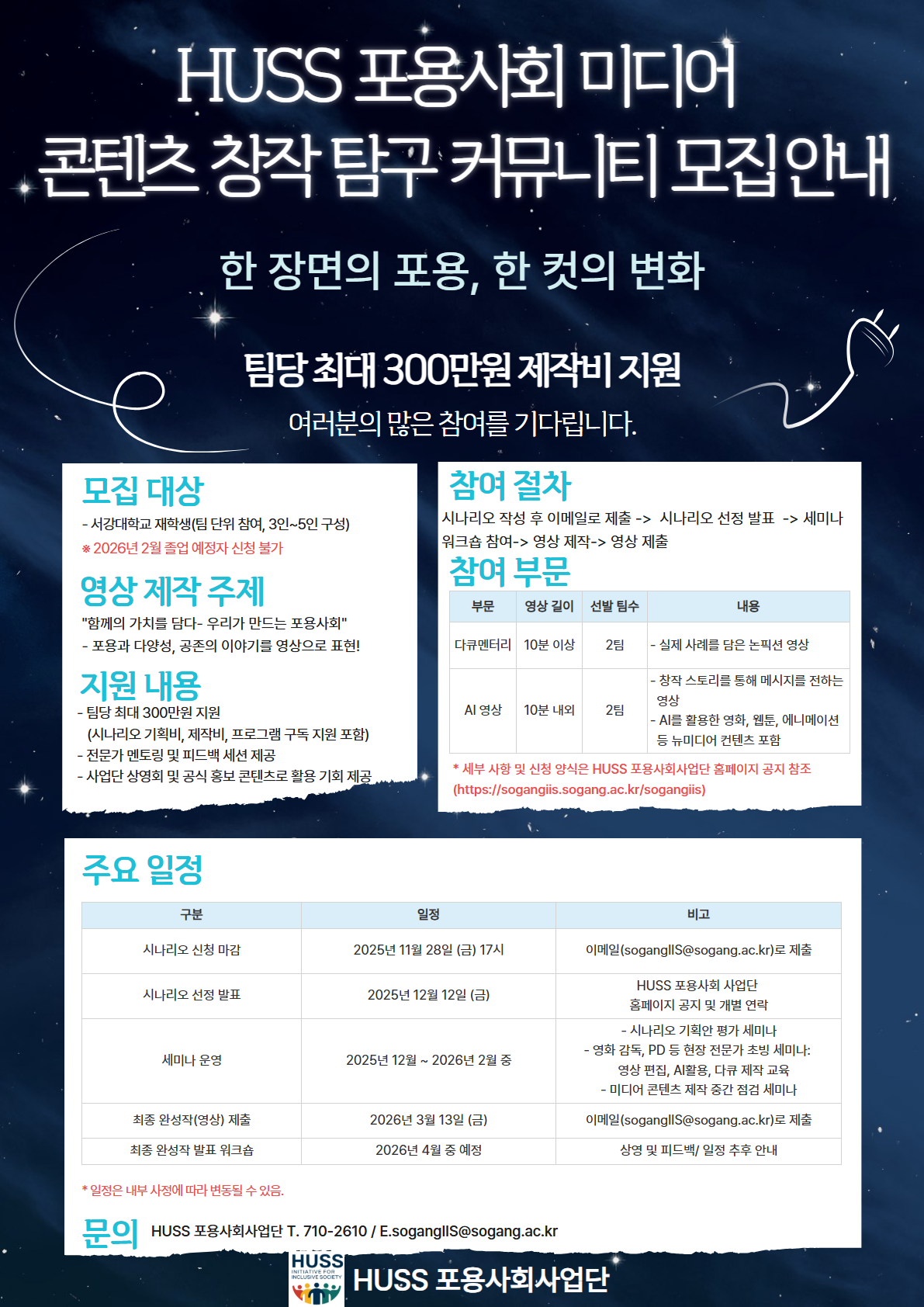 [HUSS 포용사회사업단] HUSS 포용사회 미디어 콘텐츠 창작 탐구 커뮤니티 모집 안내