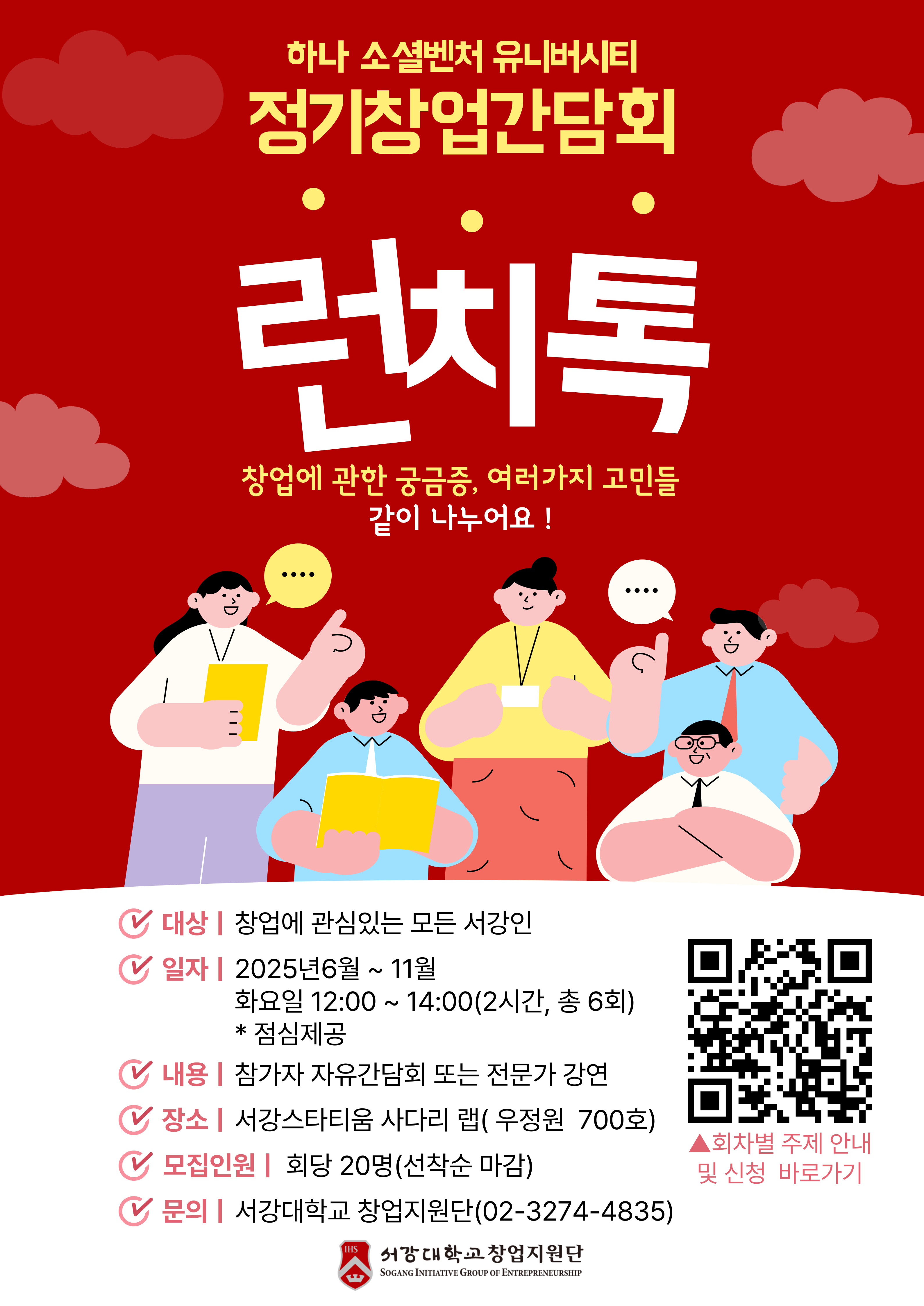 [창업지원단] 2025년 정기창업간담회 '런치톡' 2회차 참가자 모집 안내 (~9/29)