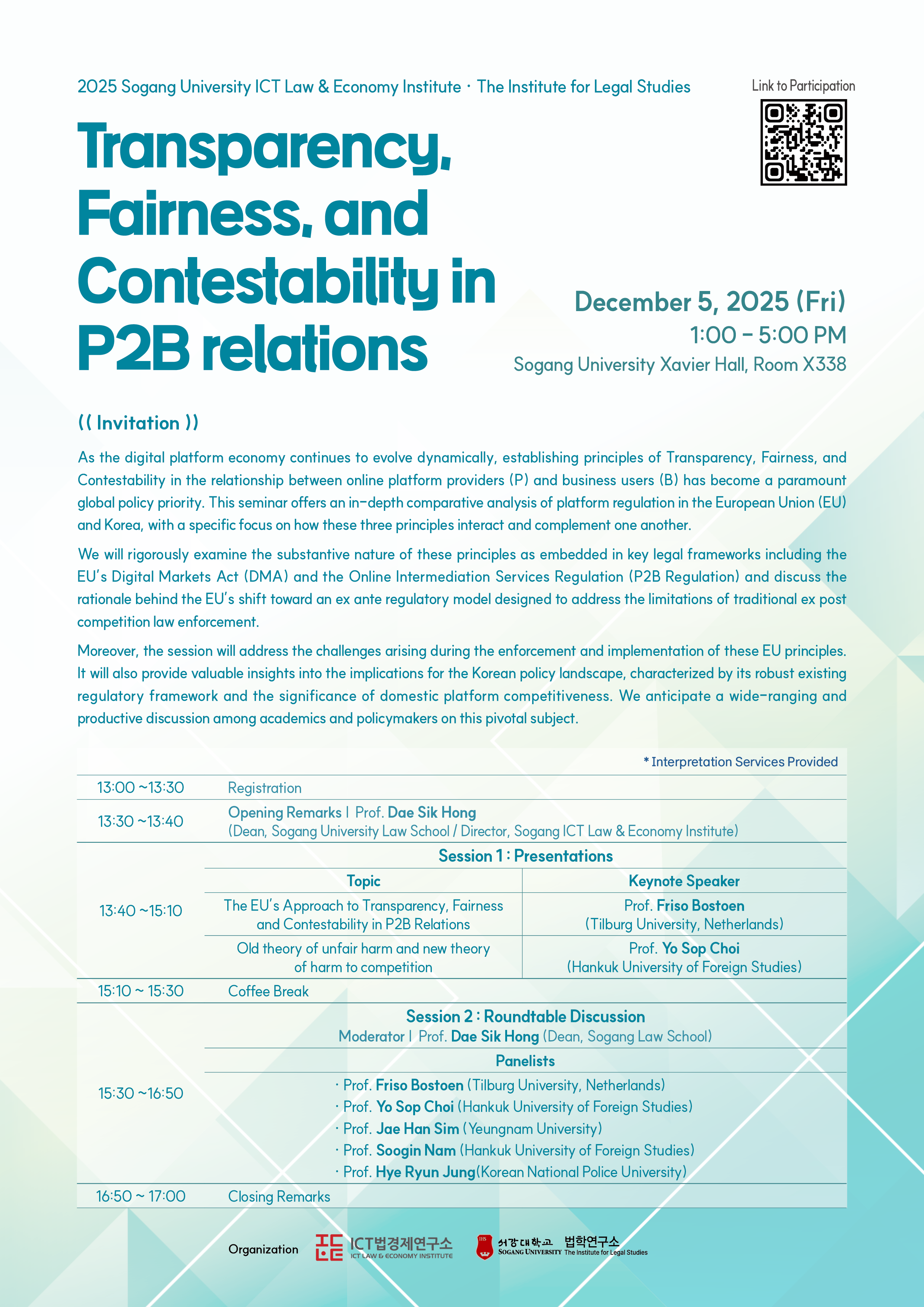 주최: 서강대학교 ICT법경제연구소, 법학연구소