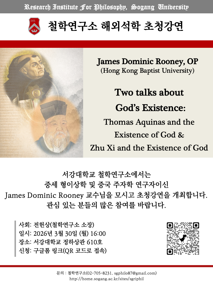 2026년 3월 서강대 철학연구소에서는 James Dominic Rooney, OP 신부님을 모시고자 합니다.