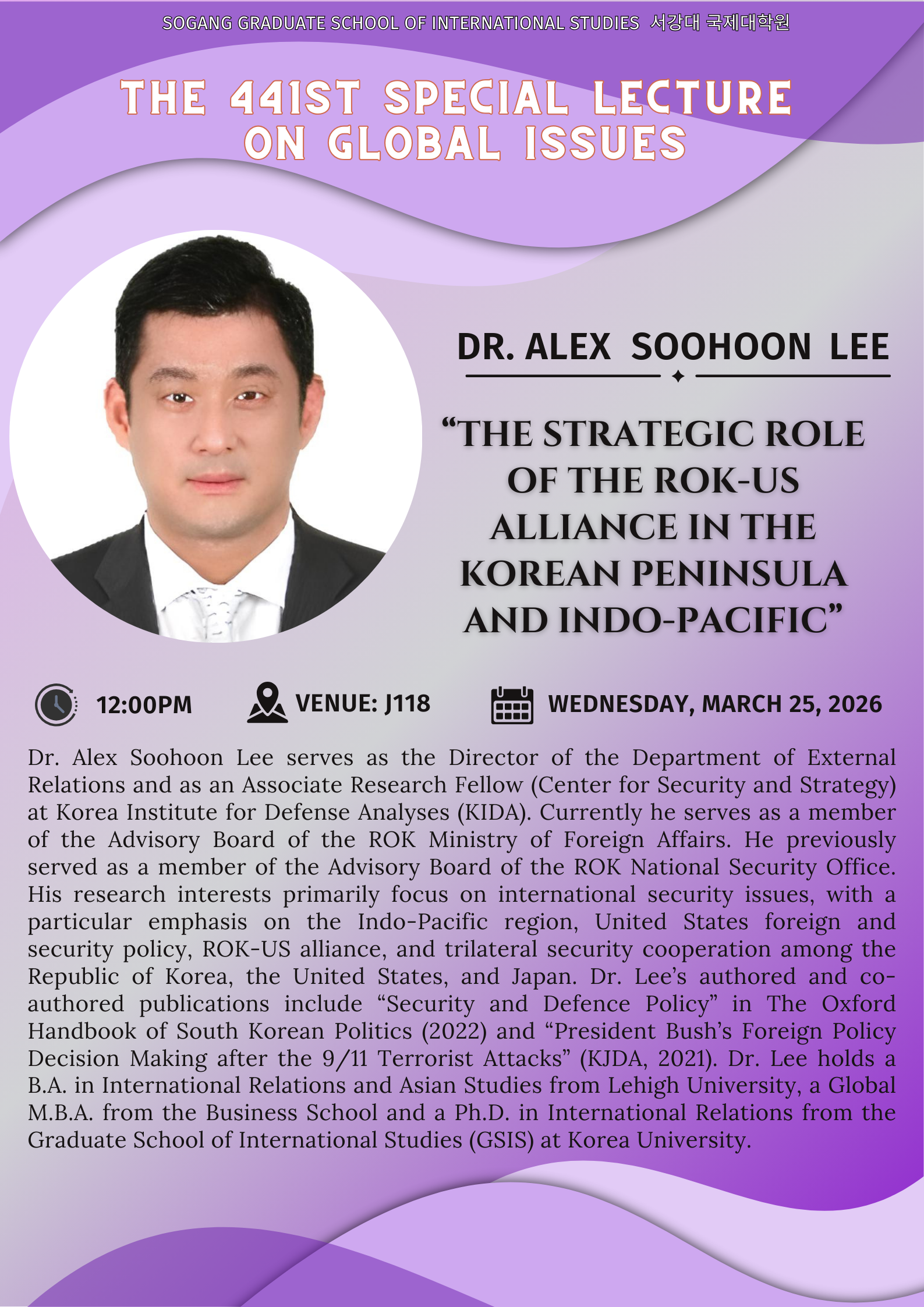 [국제대학원] 제 441회 글로벌 이슈 특강(Special Lecture on Global Issues) 안내 (3/25)
