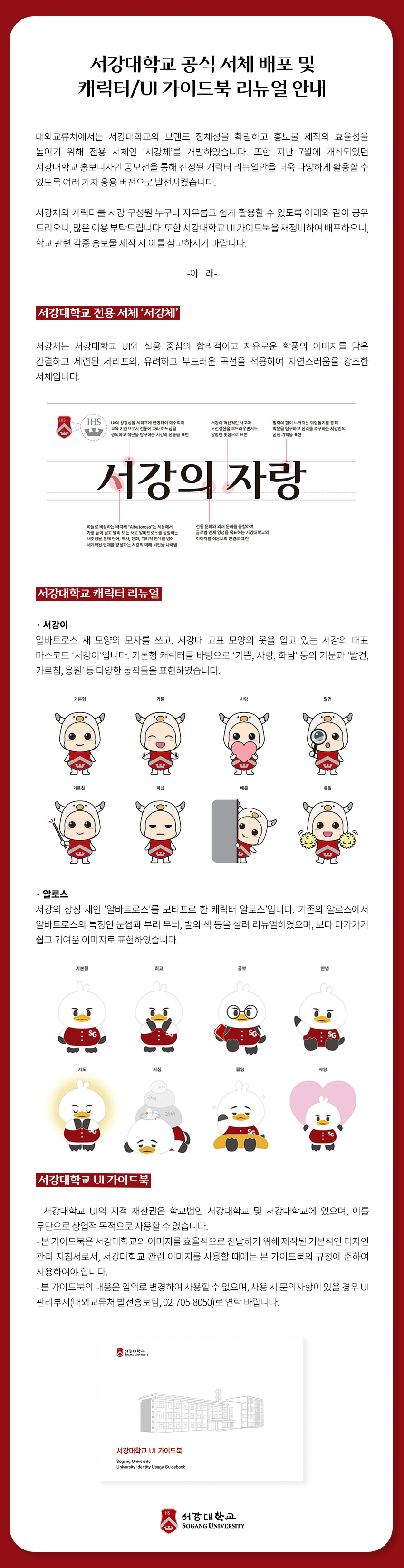 [대외교류처] 서강대학교 공식 서체 배포 및 캐릭터/UI 가이드북 리뉴얼 안내