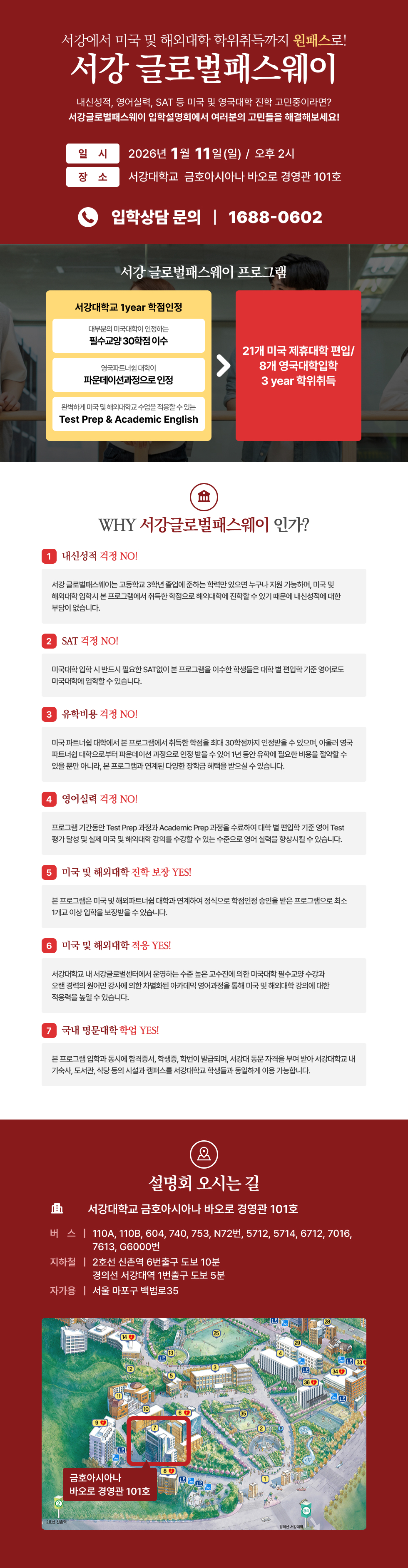 [학교법인 서강대학교] 서강글로벌센터 - 서강글로벌패스웨이 프로그램 2026년 3월학기 입학 설명회 안내 (1/11)