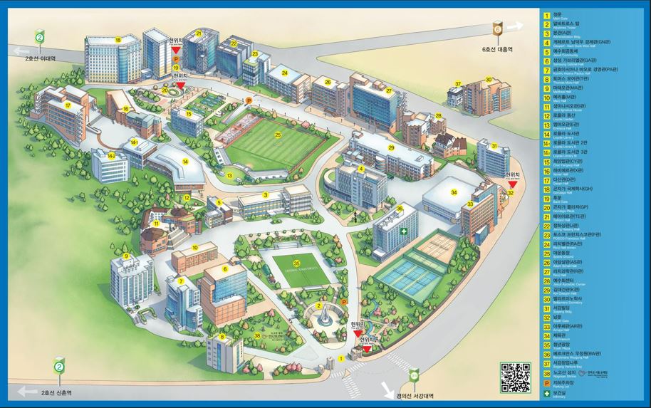 대외교류처에서는 입체적이고 세련된 디자인과 온라인 접근성을 고려한 QR코드를 추가하여 서강대학교 캠퍼스맵을 리뉴얼 하였습니다.