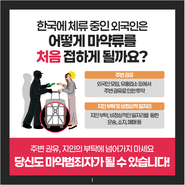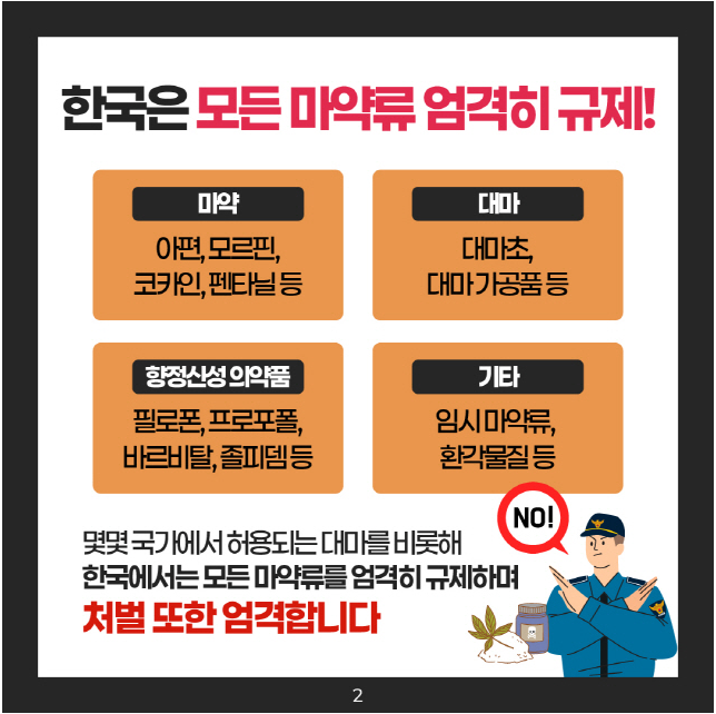 전 세계적으로 마약류 문제의 심각성이 커지는 가운데, 교내 외국 유학생 여러분의 안전한 유학생활을 지원하기 위해 마약류 예방 관련 안내 드립니다.