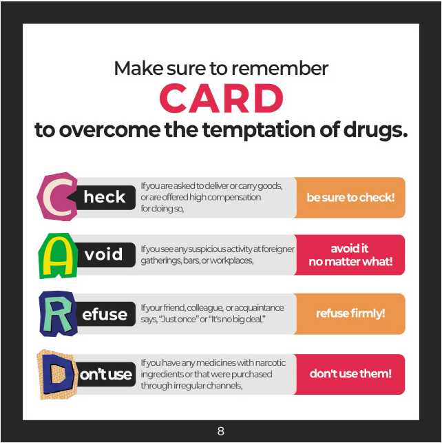 마약의 위험성을 올바르게 인지하고, 유학생 여러분이 건강하고 안전한 캠퍼스 생활을 이어갈 수 있도록 적극 협조 부탁드립니다.