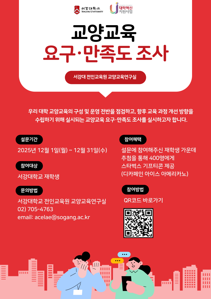[전인교육원] 학부생 대상 서강 교양교육 요구·만족도 조사 (~12/31)