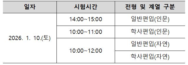 [입학처] 2026학년도 편입학 필기시험 감독보조원(대학원생) 모집(~12/30)