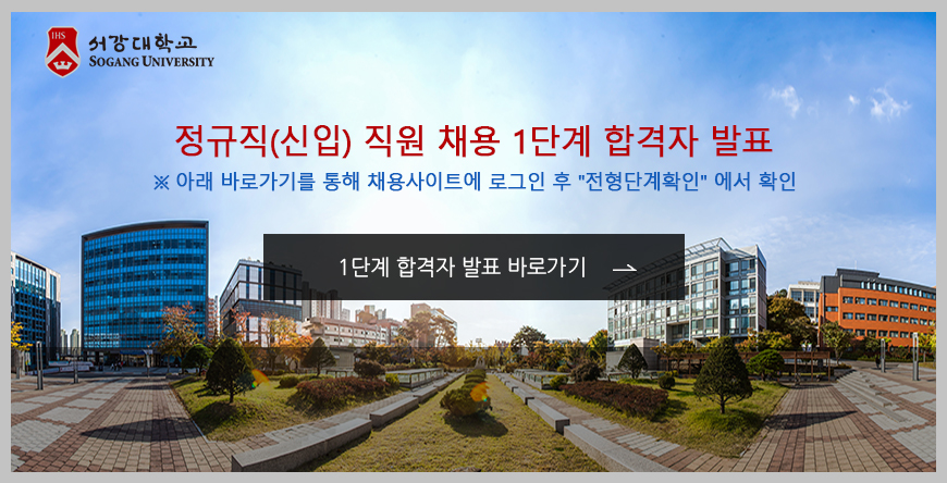 홈 sogang-general 일반공지 2026년 서강대학교 정규직 신입직원 채용 1단계 서류전형 합격자 발표 sogang-general 일반공지 전체관리자 2026년 서강대학교 정규직 신입직원 채용 1단계 서류전형 합격자 발표 작성자: 전체관리자 게시일: 2026. 1. 22. 오후 1:19:02