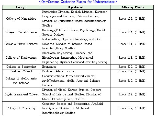 ㅇㅇ- 단대별 집결 후 지정 버스에 탑승하여 이동 (※행사 버스 이외 차량 교내 진입 제한)