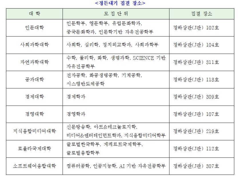 ㅇㅇ- 단대별 집결 장소