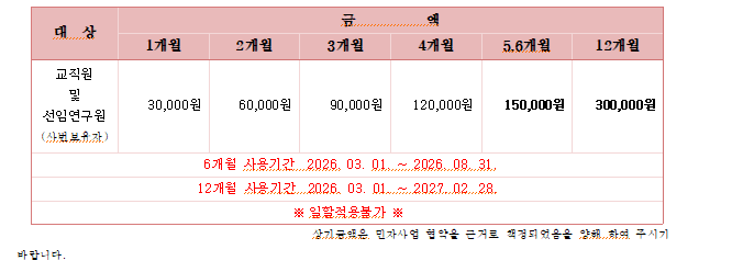 - 정기권 할인(6개월/12개월) : 2026. 02. 19.(목) ~ 2026. 03. 13.(금) (이후 신청시 할인불가)