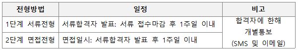 ※ 전형일정 및 임용일은 채용진행상황에 따라 변경될 수 있음