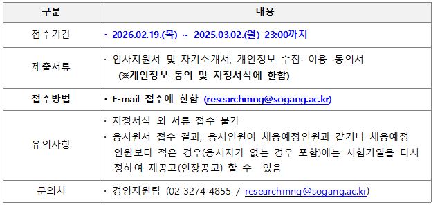 서강대학교 산학협력단 신입직원(계약직원) 채용공고