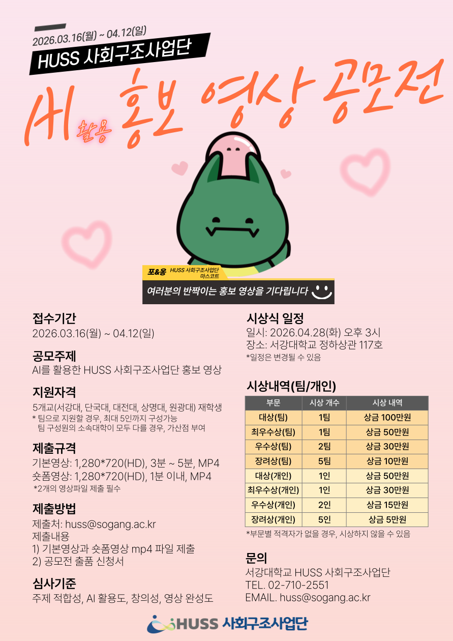 [HUSS 사회구조사업단] AI를 활용한 사회구조사업단 홍보 영상 공모전 진행 안내(3/16~4/12)