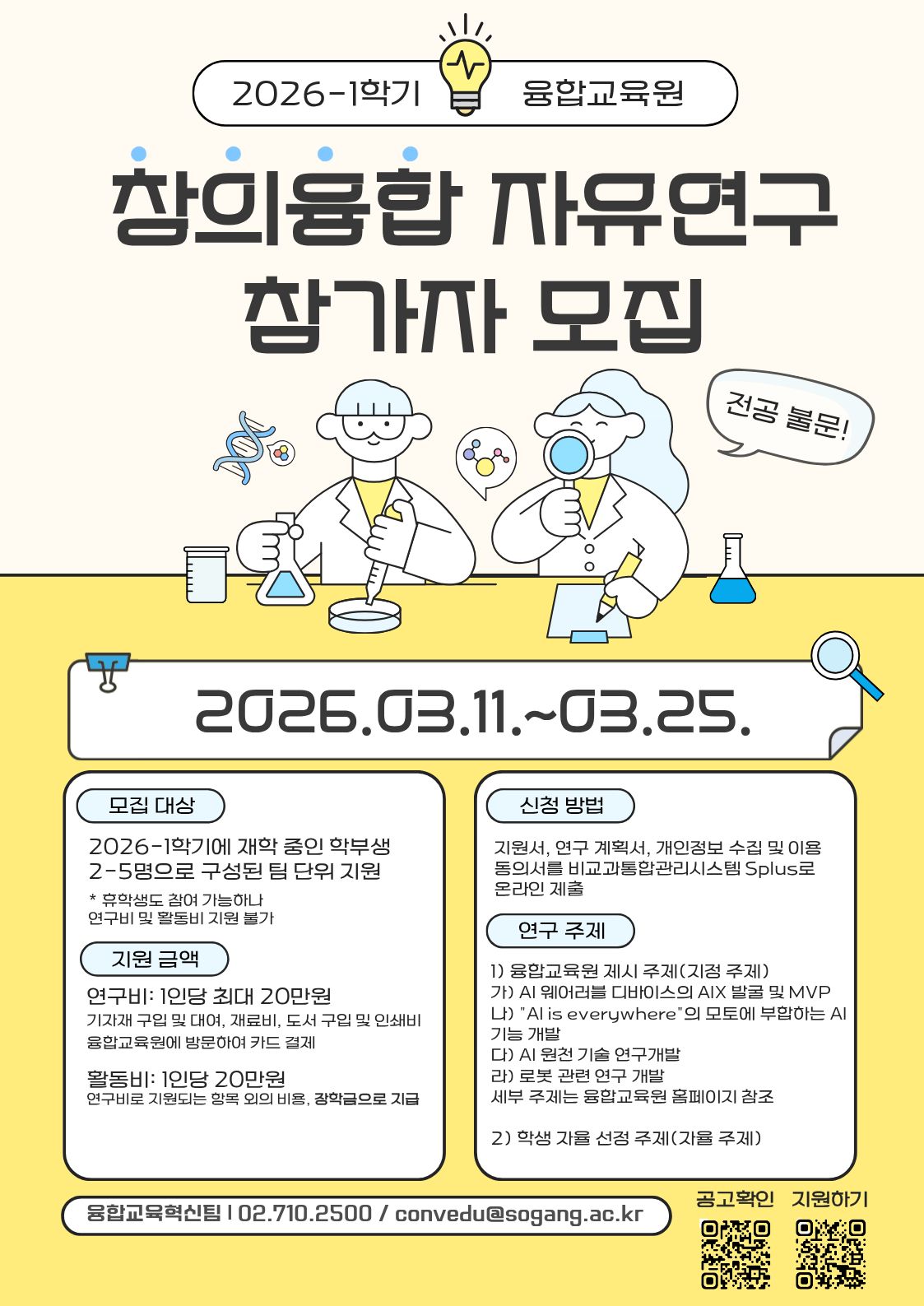 [융합교육혁신팀] 2026-1학기 창의융합 자유연구 프로그램 참가자 모집 안내 (~3/25)