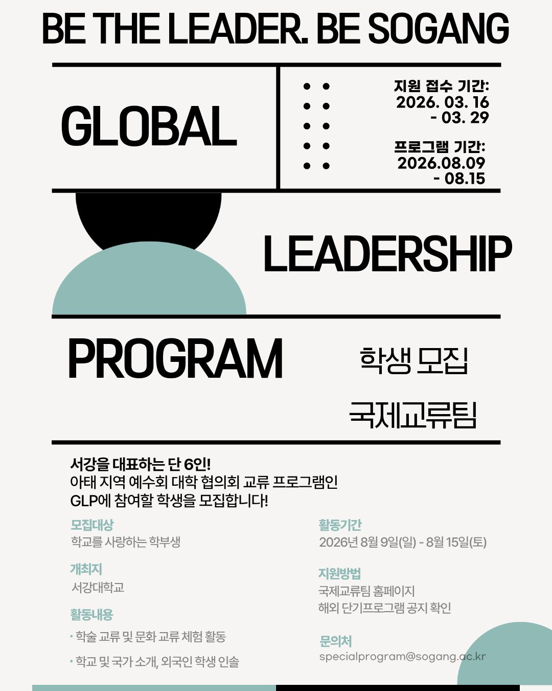 [국제교류팀] 2026 Global Leadership Program 참가 학생 모집 (~3/29)