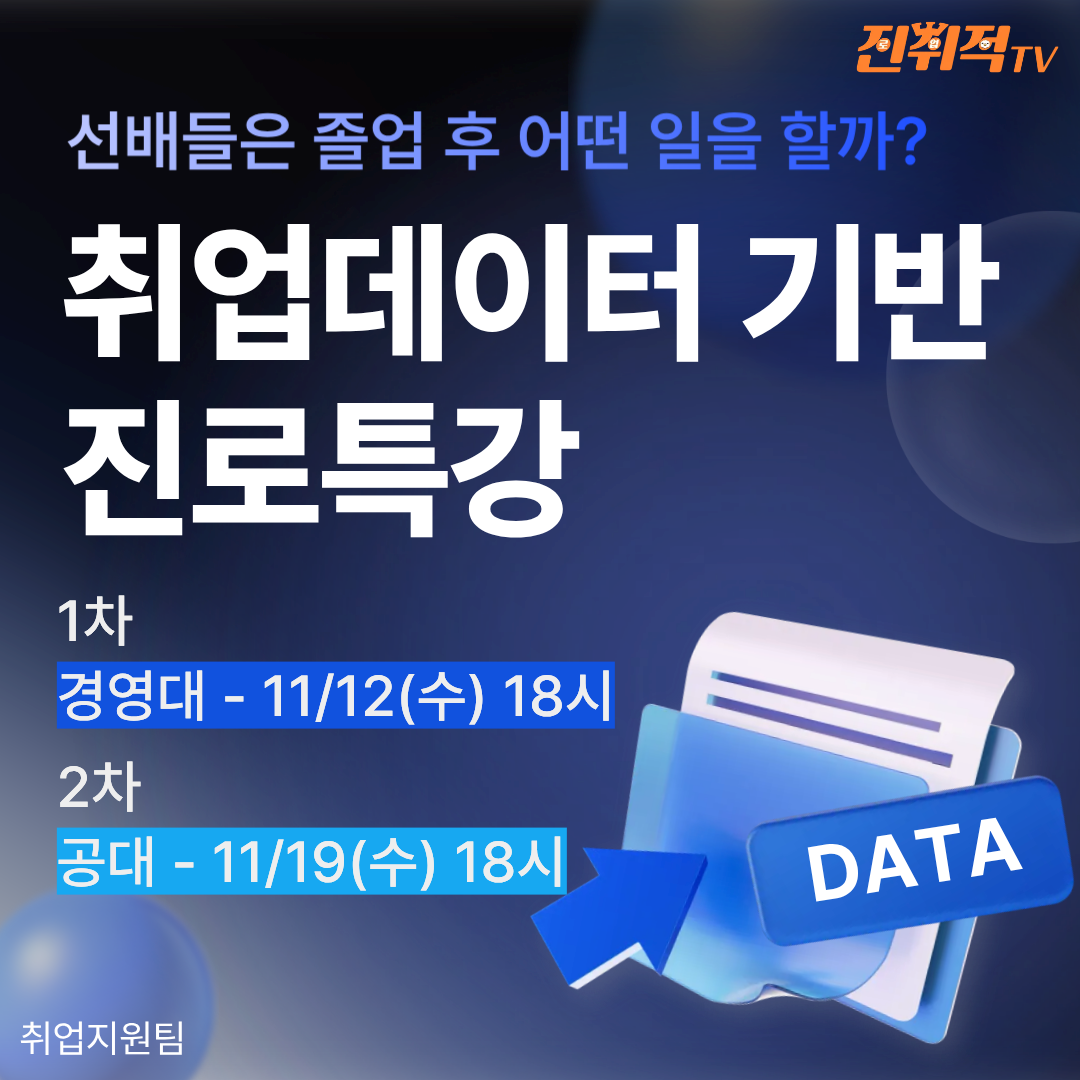 [Career Support Center] [Jinchwijuk TV – Nov 12 (Wed)] Career Talk Based on Employment Data – School of Business Special
