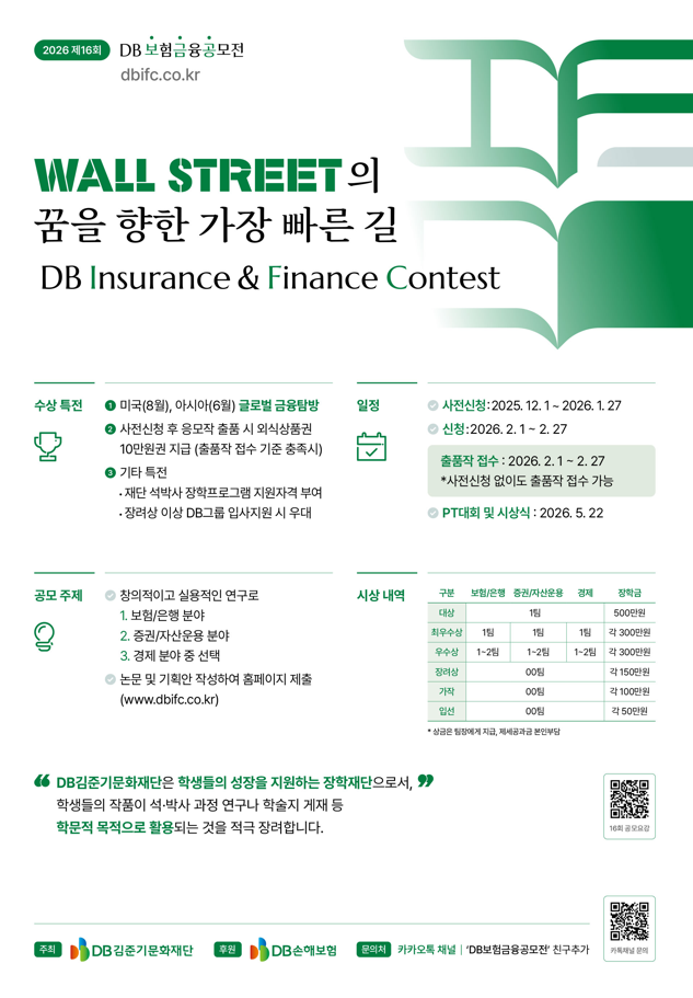 홈 sogang-scc 학생지원팀 [DB김준기문화재단] 제16회 DB보험금융공모전(IFC) sogang-scc 학생지원팀 [DB김준기문화재단] 제16회 DB보험금융공모전(IFC) 작성자: 학생지원팀 게시일: 2025. 12. 10. 오전 12:00:00