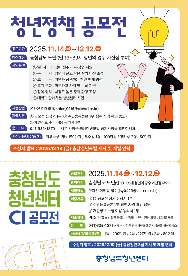 홈 sogang-scc 학생지원팀 [재단법인충청남도평생교육인재육성진흥원]청년센터 CI 공모전 sogang-scc 학생지원팀 [재단법인충청남도평생교육인재육성진흥원]청년센터 CI 공모전 작성자: 학생지원팀 게시일: 2025. 12. 10. 오전 12:00:00