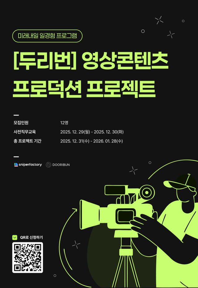 [스나이퍼팩토리x두리번] 영상콘텐츠 프로덕션 프로젝트 - 미래내일 일경험 프로그램 참여자 모집