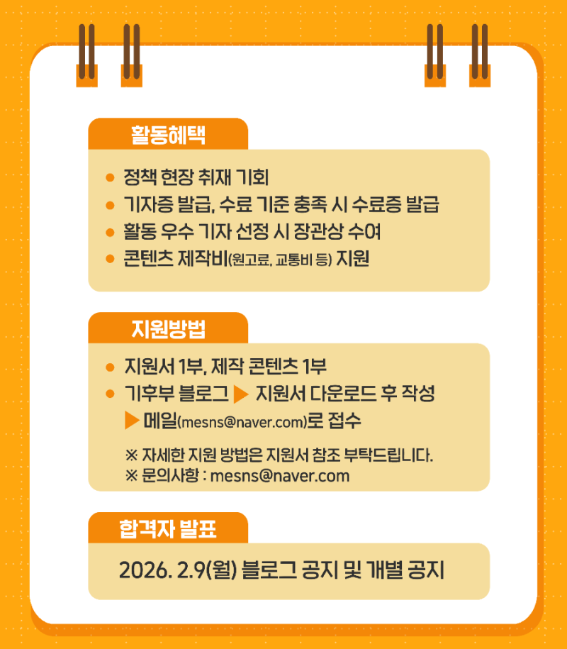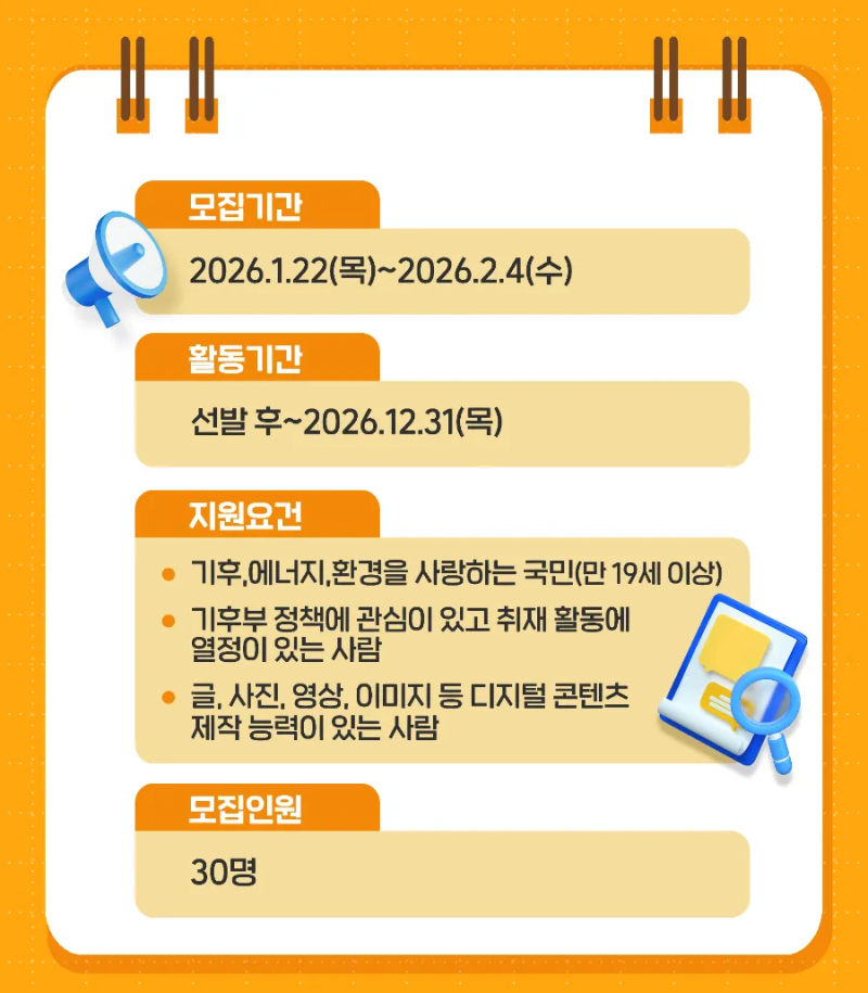 [기후부] 2026년 기후에너지환경부 소셜기자단 모집(~2/4) 공고
