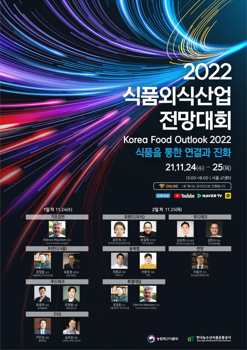 홈 sogang-student 학생공지 [한국농수산식품유통공사] 「2022 식품외식산업 전망대회」 sogang-student 학생공지 학생지원팀 [한국농수산식품유통공사] 「2022 식품외식산업 전망대회」 작성자: 학생지원팀 게시일: 2021. 11. 15. 오전 10:46:29 첨부파일 2022 식품외식산업 전망대회 강연 프로그램 안내.jpg