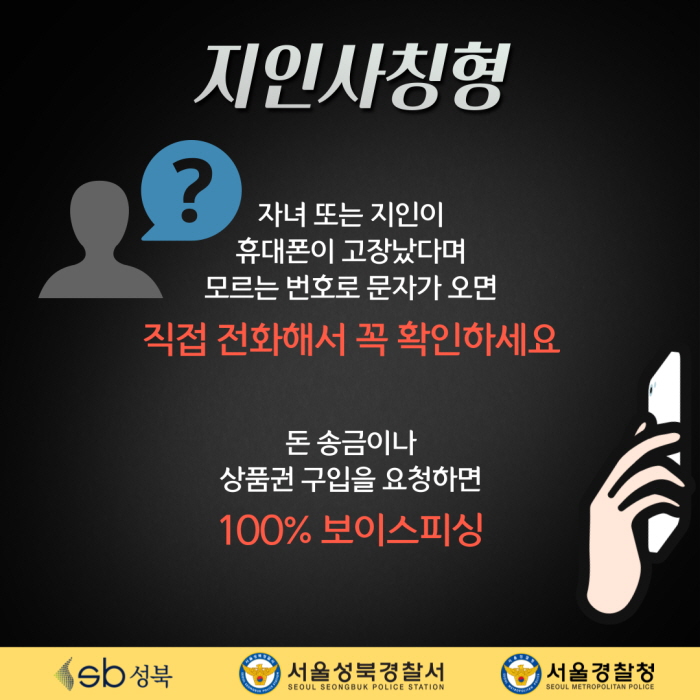 홈 sogang-student 학생공지 [서울성북경찰서] 보이스피싱 예방 프로젝트 sogang-student 학생공지 학생지원팀 [서울성북경찰서] 보이스피싱 예방 프로젝트 작성자: 학생지원팀 게시일: 2022. 9. 1. 오후 3:03:58