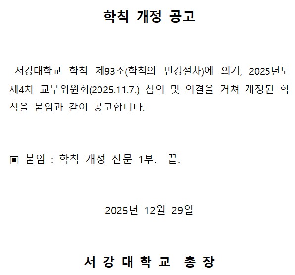 [기타] 학칙 개정 공고