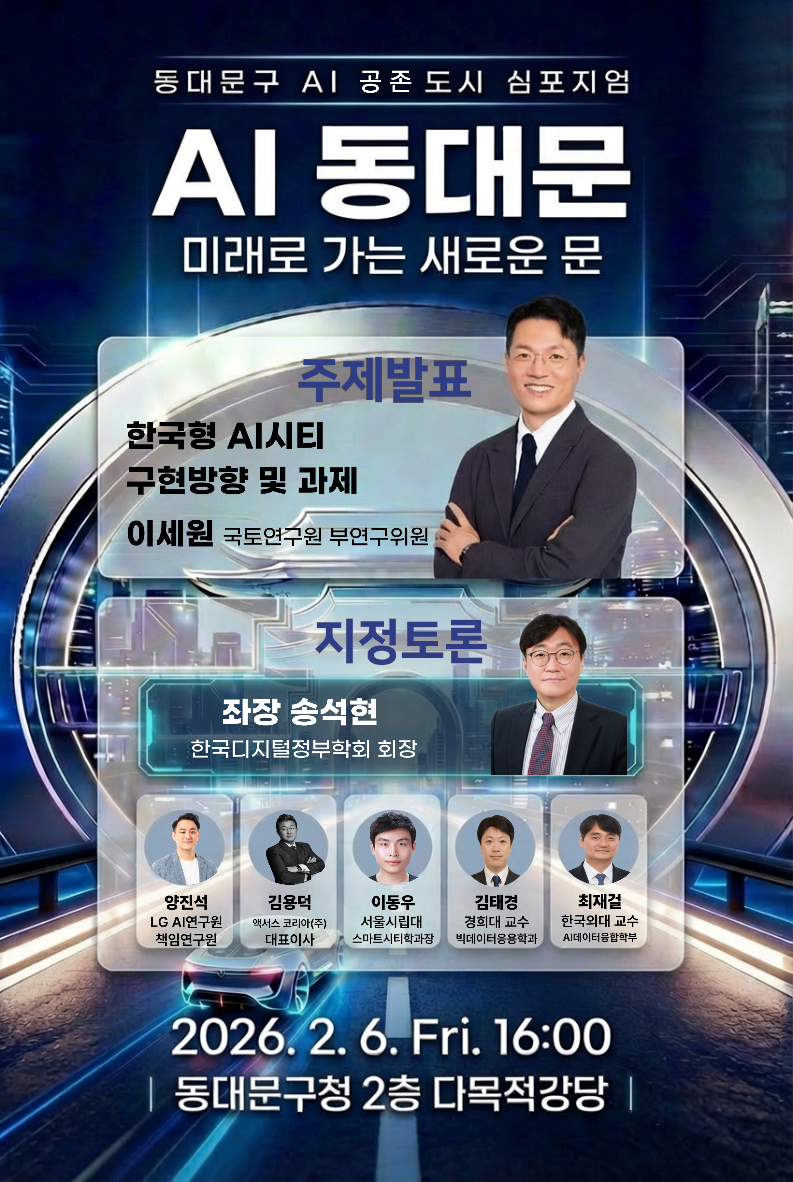 인공지능 대전환 시대를 맞아 사람 중심·현장 중심의 AI 공존도시로 거듭나기 위해 AI 분야 전문가와 함께「동대문구 AI 공존도시 심포지엄」을 개최합니다.