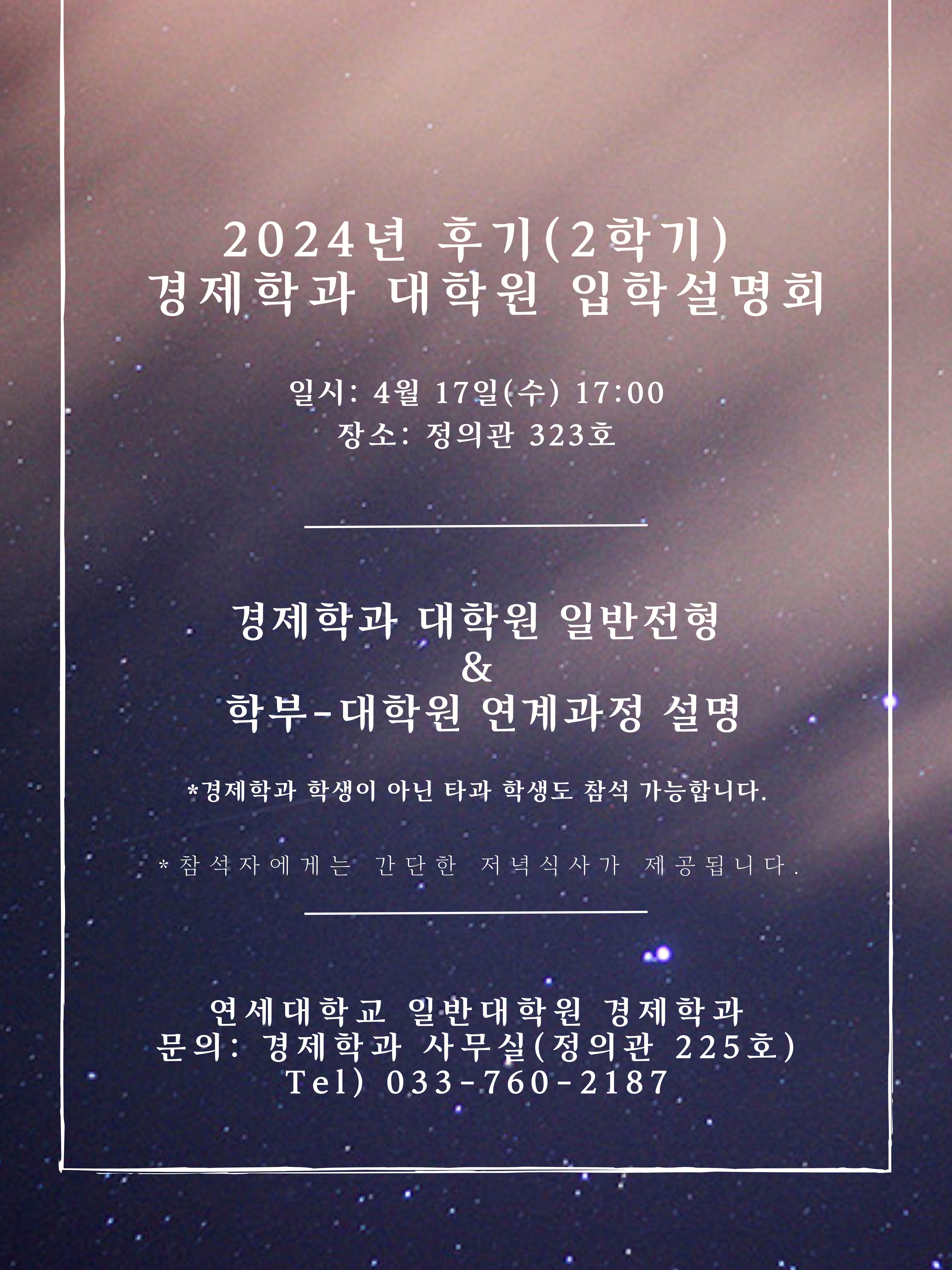 2024년 후기 경제학과 대학원 입학 및 학부-대학원 연계과정 설명회