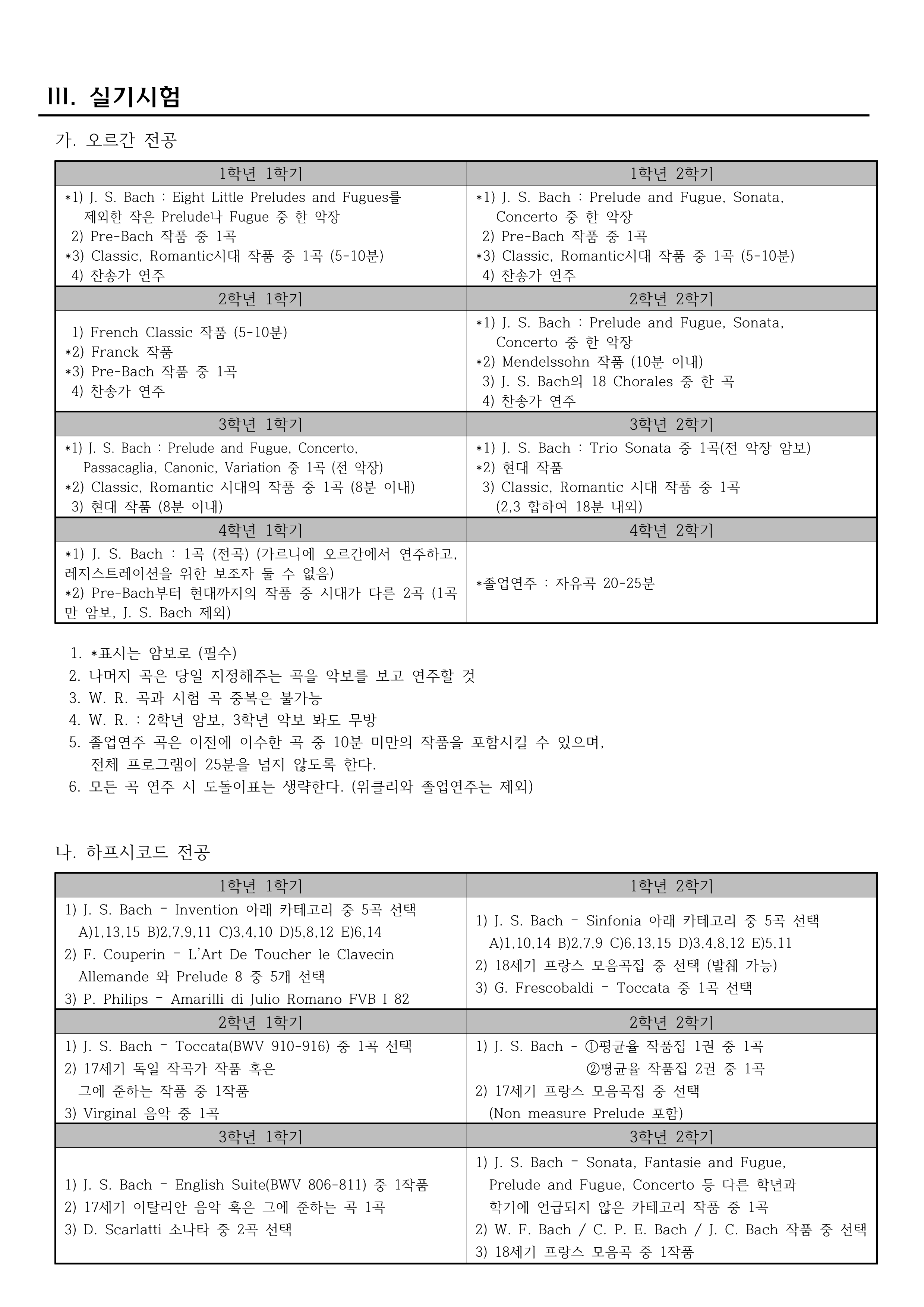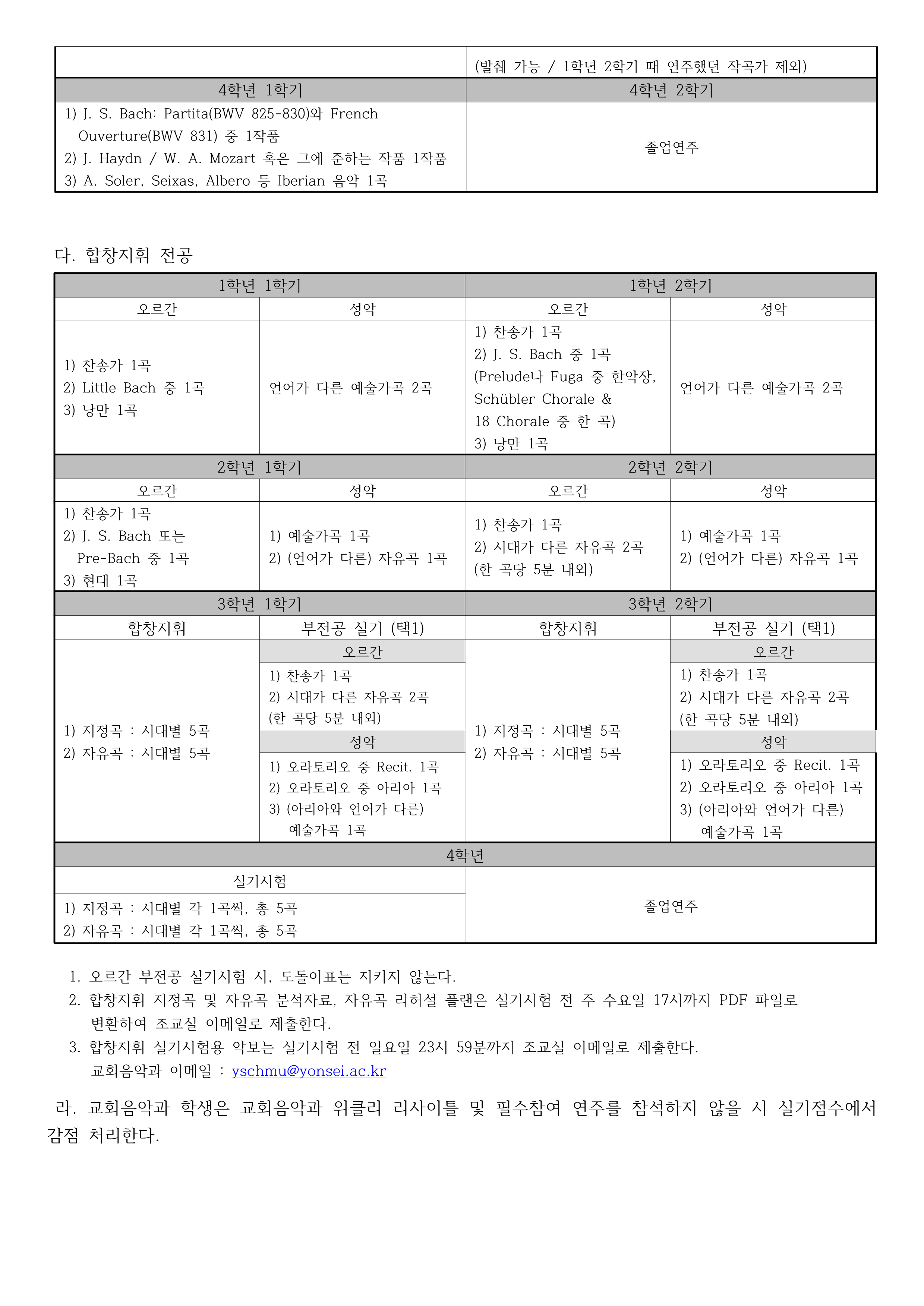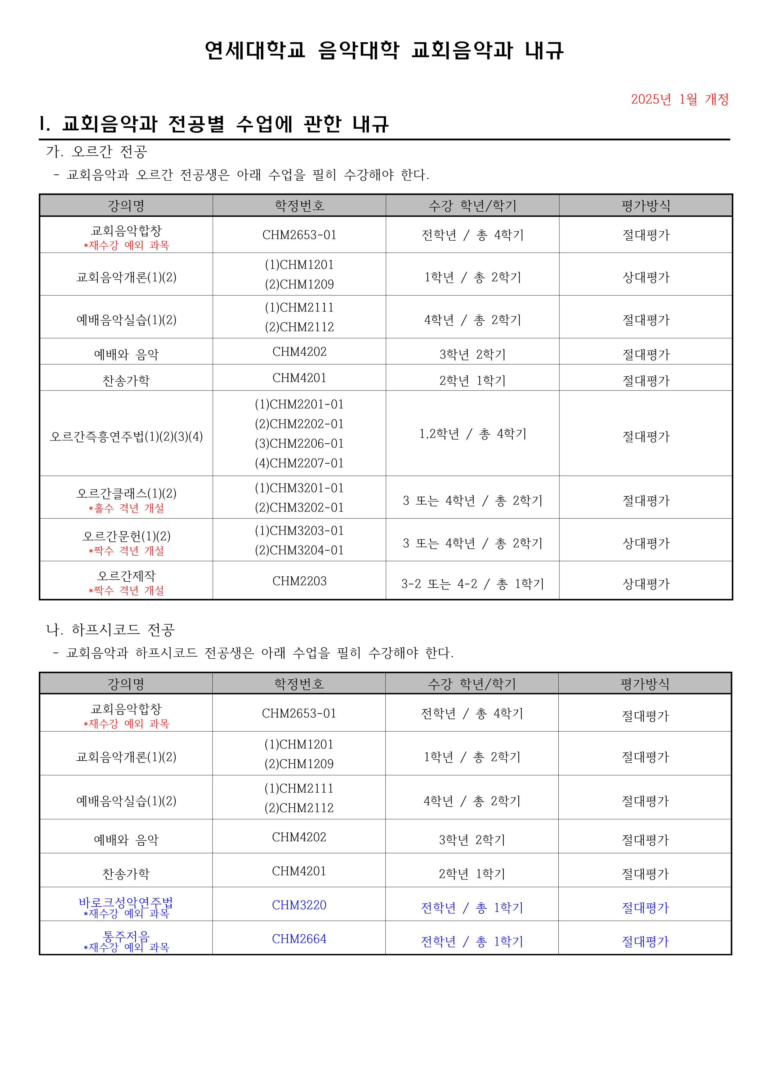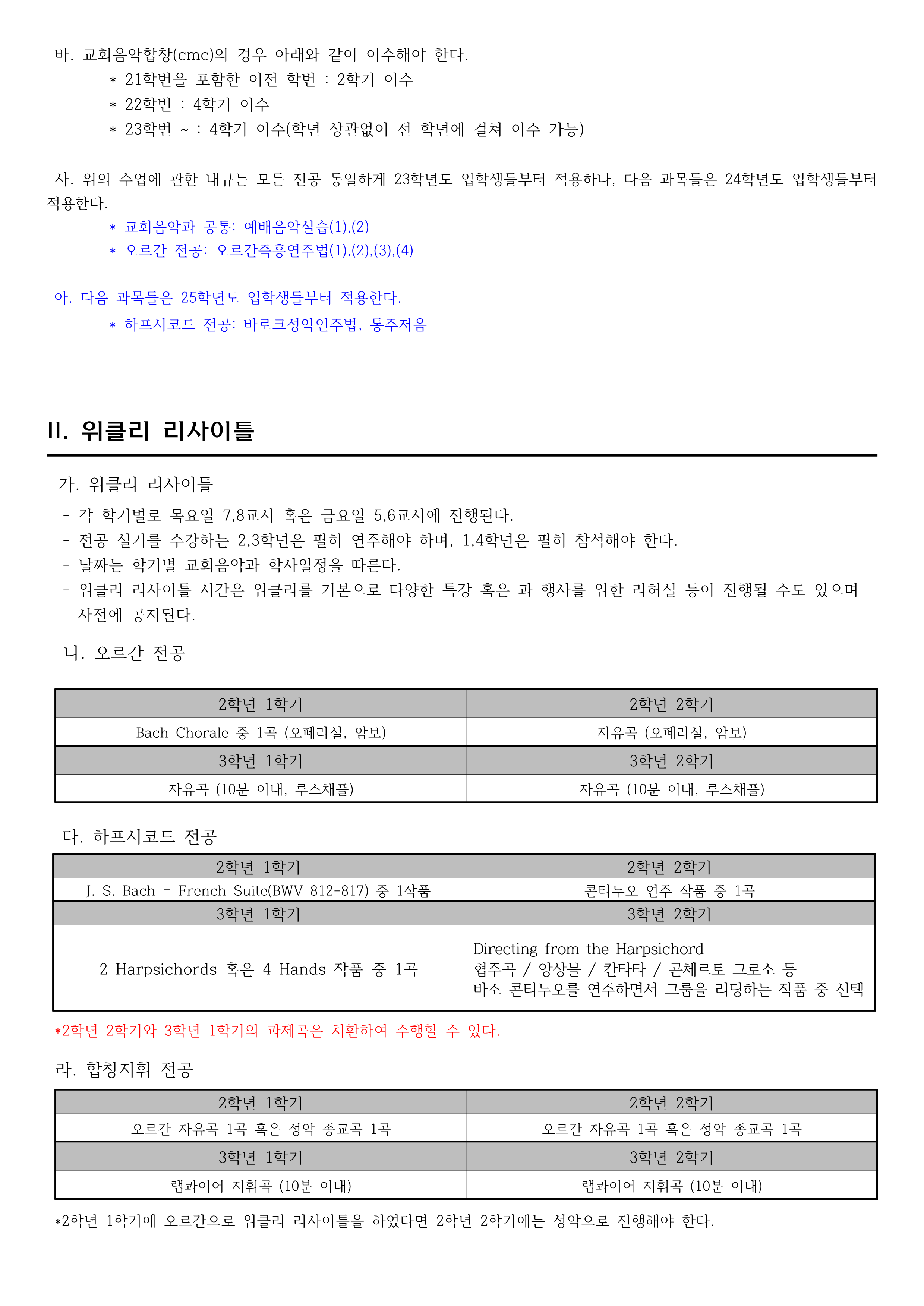 - 일부 과목 적용 학번 변경: "1. 교회음악과 전공별 수업에 관한 내규" 중 사. 부분 확인