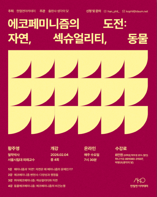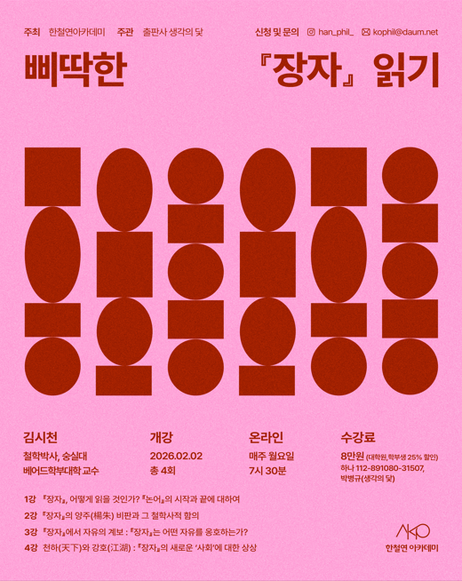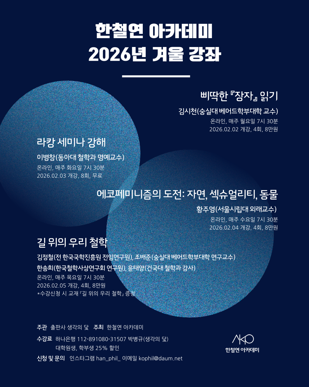 [한철연 아카데미] 2026 겨울강좌 안내 - 삐딱한장자읽기, 라캉세미나강해, 에코페미니즘의도전, 길위의우리철학