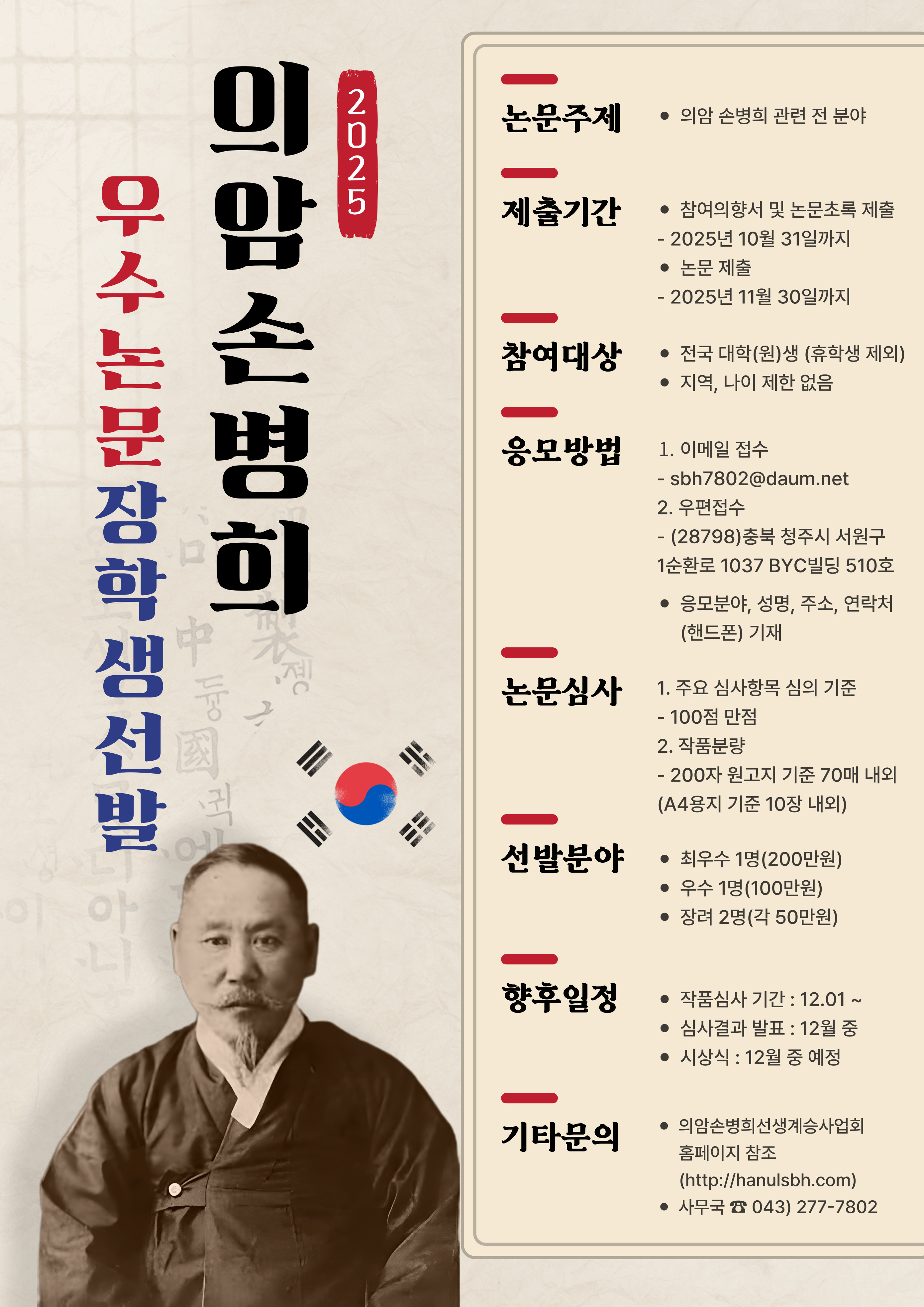 2025 의암 손병희 우수 논문 장학생 선발 안내 (신촌캠퍼스)}