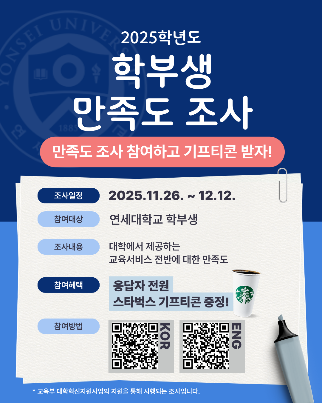 1. Undergraduate students currently registered in Yonsei University can participate in the survey.